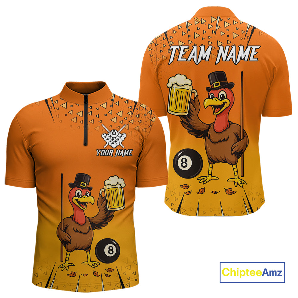 Orange Funny Turkey 8 Ball Pool Billiard Shirt For Men Custom Thanksgiving Billiard Jersey TDM4836