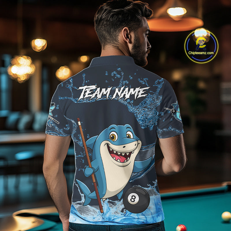 Blue Funny Shark 8 Ball Pool Billiard Shirt For Men Custom Billiard Team Jersey Polo & 1/4 Zip TDM4871