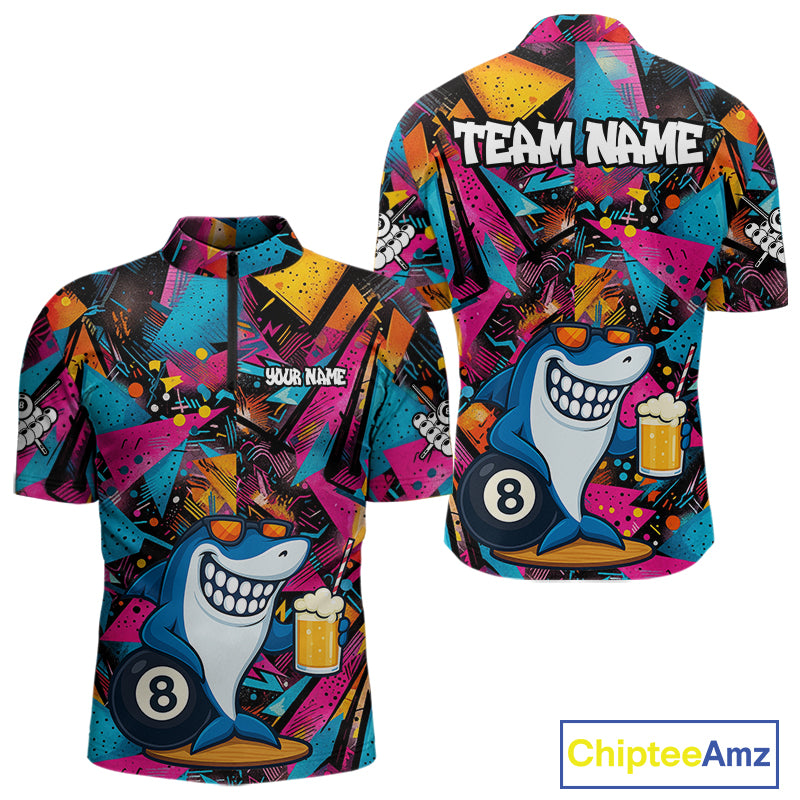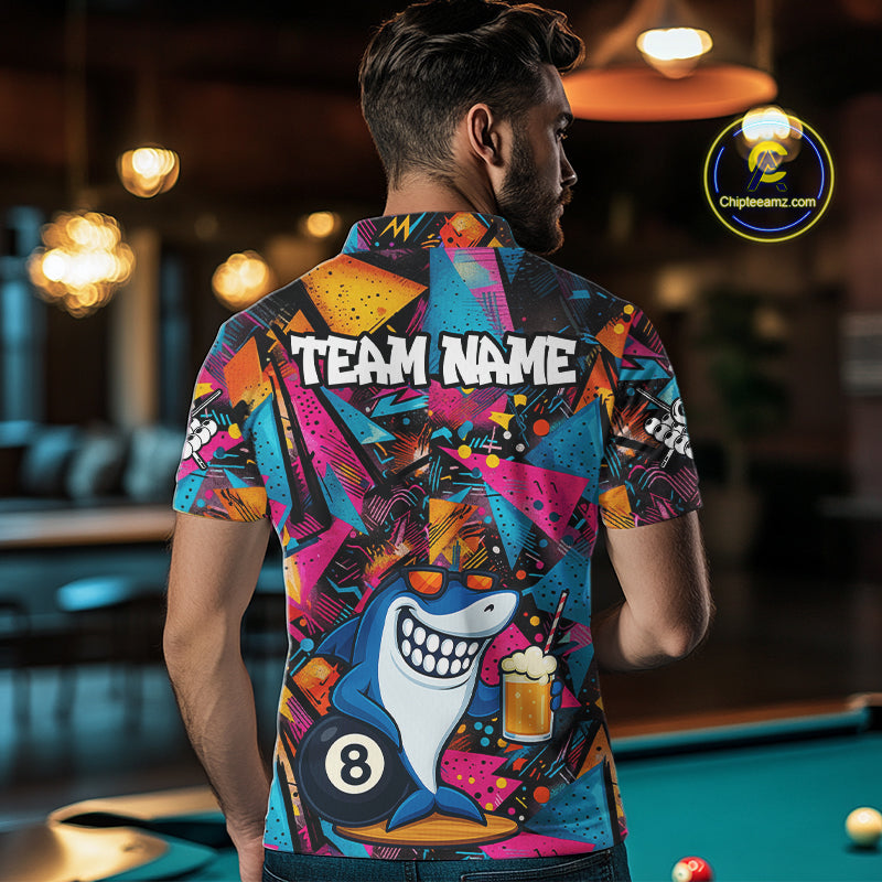 Funny Shark Colorful Graffiti Style Custom 8 Ball Billiard Shirt For Men Best Billiard Team Jersey TDM4890