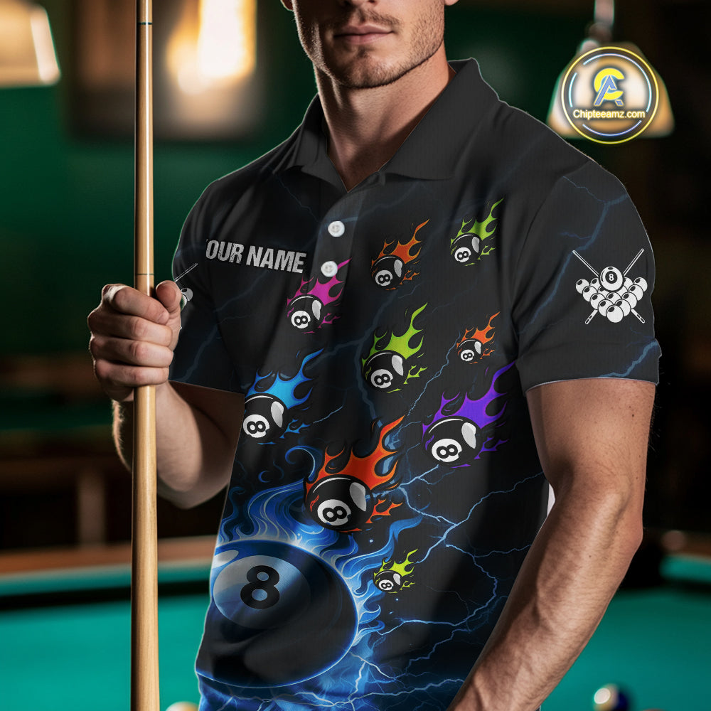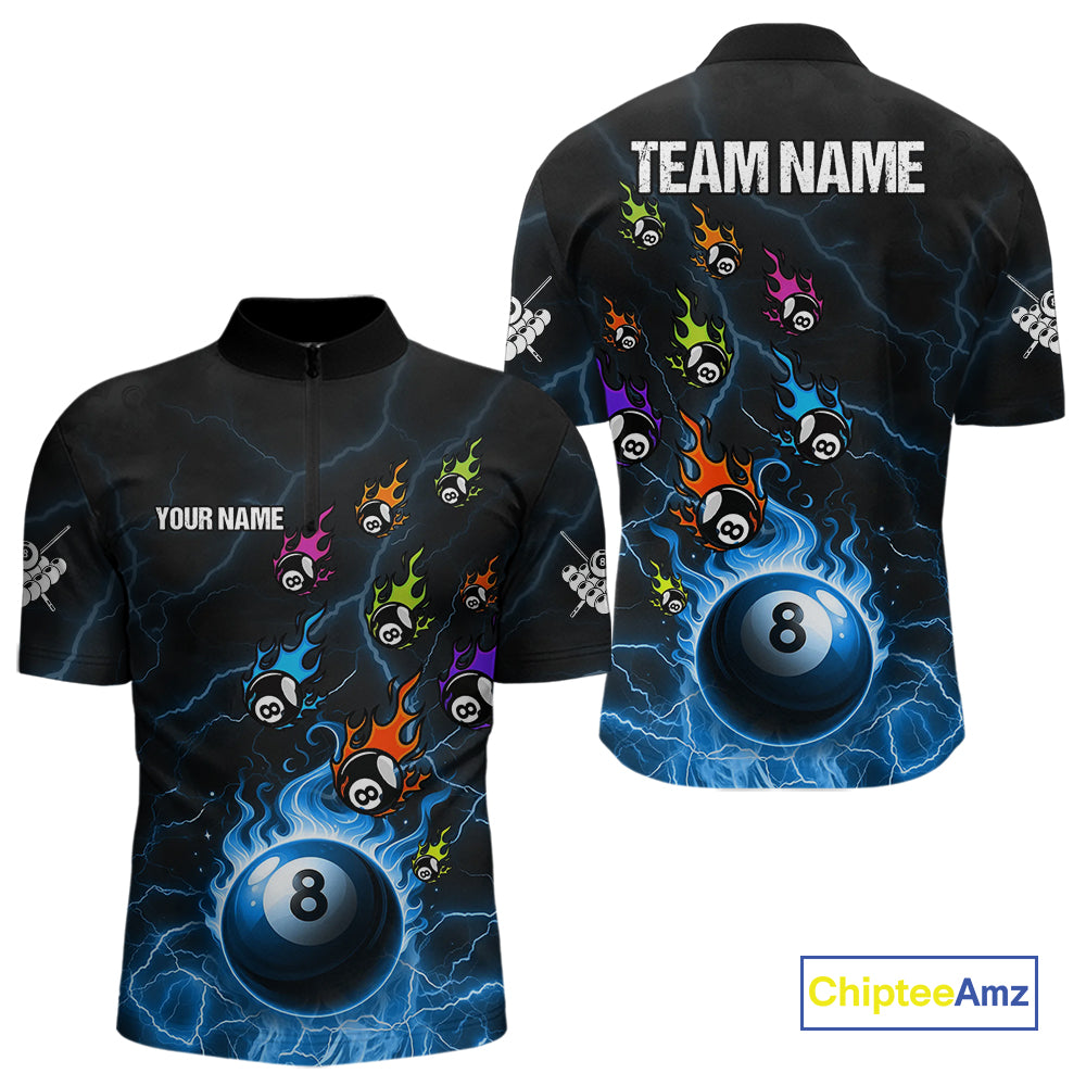 Personalized Funny Colorful Fire Flame 8 Ball Billiard Shirt For Men Custom Pool Team Jersey |Blue TDM4967