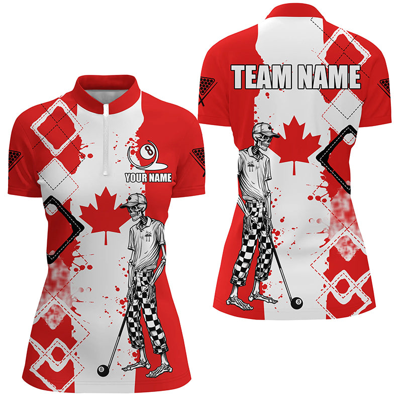 Personalized Argyle Canada Flag Funny Skeleton Women Billiard Shirts, Patriotic Billiard Team Jerseys TDM1760