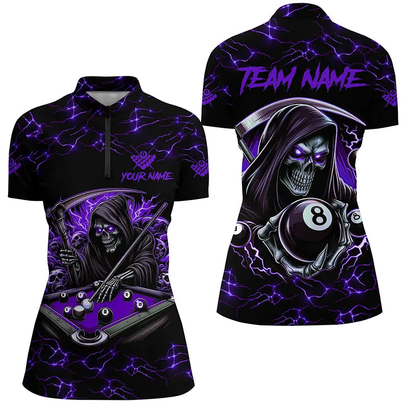 Purple Funny Death Skeleton 8 Ball Pool Women Billiard Shirts Custom Name Lightning Billiard Jerseys TDM2160