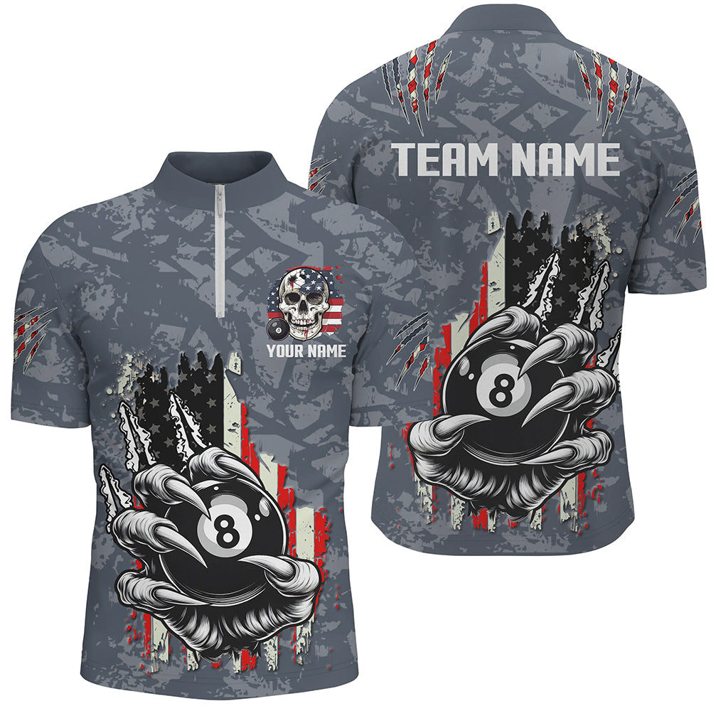 Funny Claw Tearing US Flag 8 Ball Pool Custom Billiard Shirts For Men, Patriotic Billiard Jerseys TDM2230