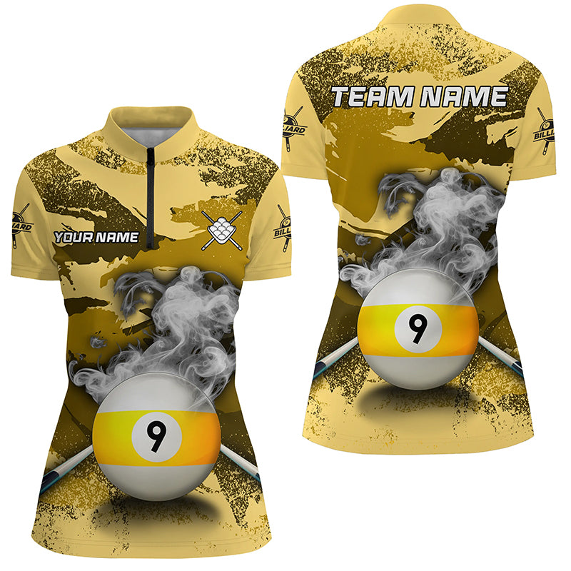 Funny 9 Ball Pool Custom Yellow Camo Women Polo & Quarter-Zip Shirts, Billiard Snooker Outfits TDM2456