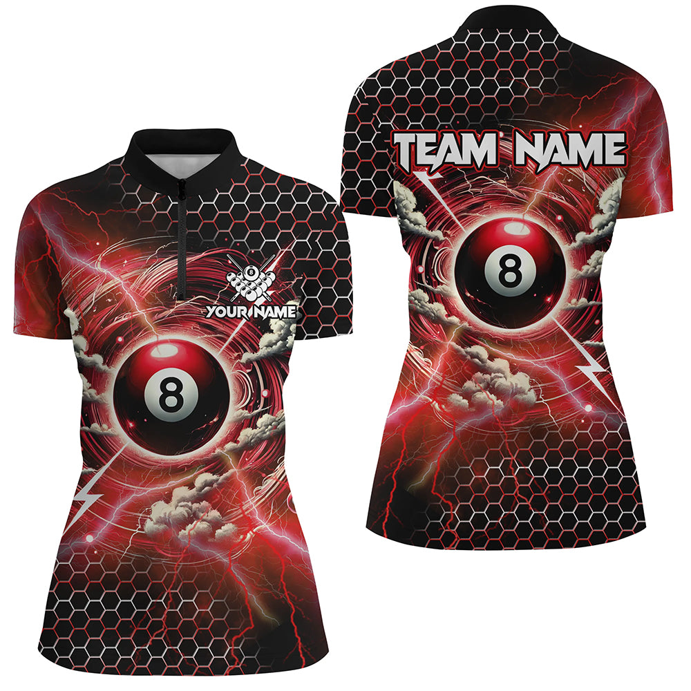 Funny Storm Thunder 8 Ball Pool Custom Billiard Shirts For Women, 8 Ball Shirts Billiard Jersey | Red TDM2524