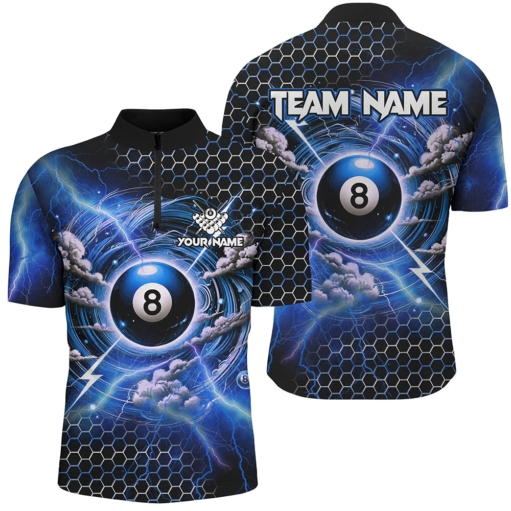 Funny Storm Thunder 8 Ball Pool Custom Billiard Shirts For Men, 8 Ball Shirt Billiard Jersey |Blue TDM2525