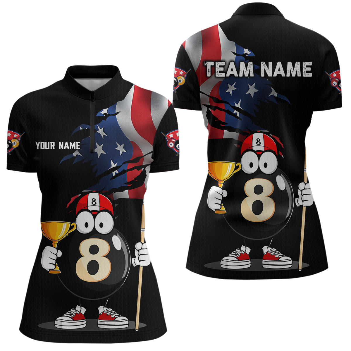 US Flag Funny 8 Ball Billiard Jersey Women Billiard Shirt for Men Team Polo & 1/4 Zip NNT12