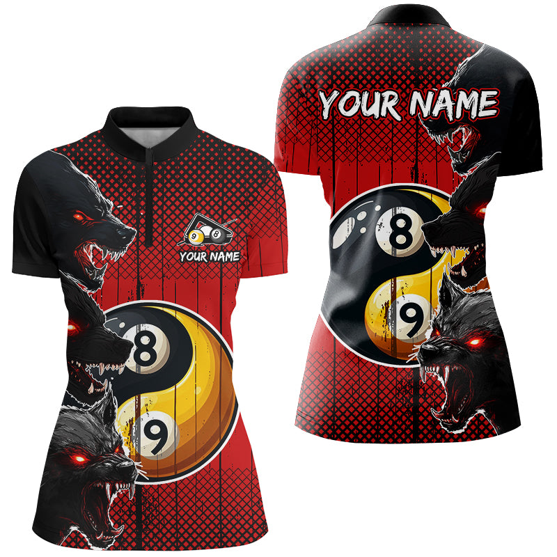 Funny Ying And Yang Eyes Of Wolf Billiard Shirts For Women Custom 8 & 9 Ball Billiard Jerseys | Red TDM2714