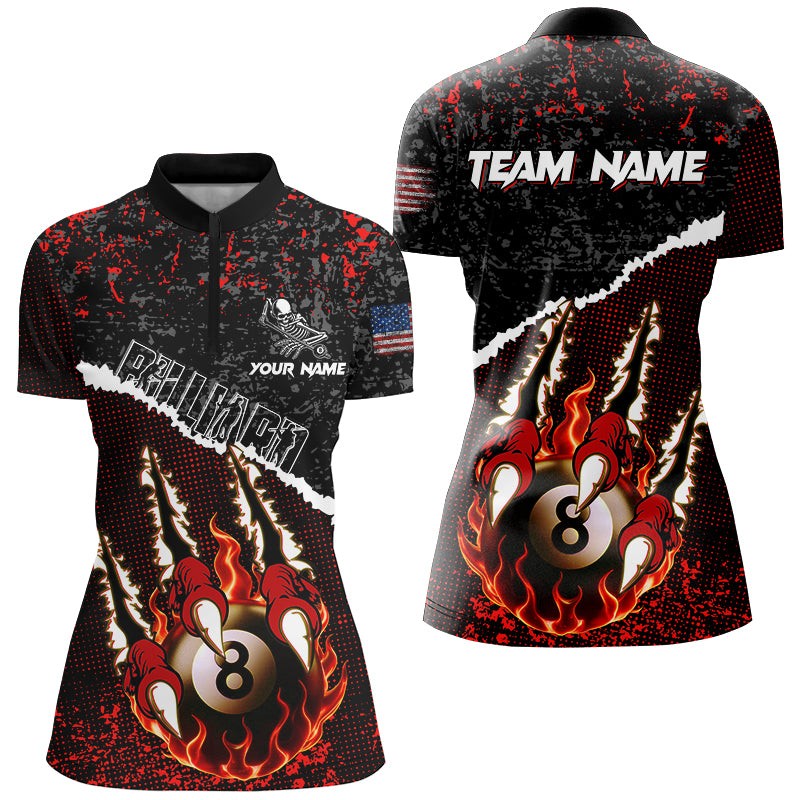 Funny Monster Hand Custom Fire Flame 8 Ball Billiard Shirts For Women, Grunge Billiard Jerseys |Red TDM2794