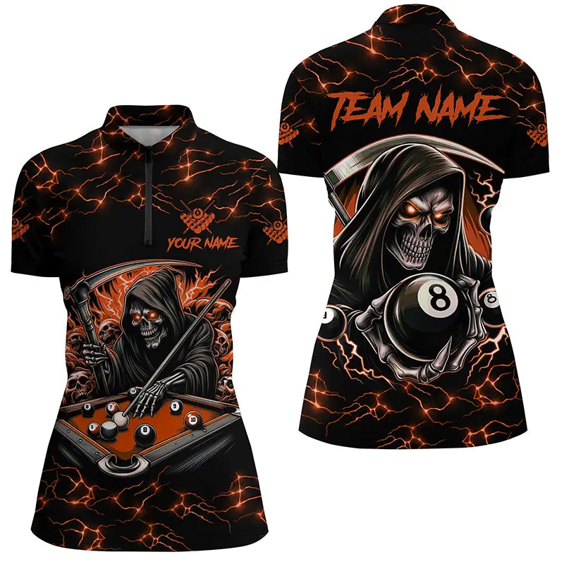 Orange Funny Death Skeleton 8 Ball Pool Women Billiard Shirts Custom Name Lightning Billiard Jerseys TDM2828