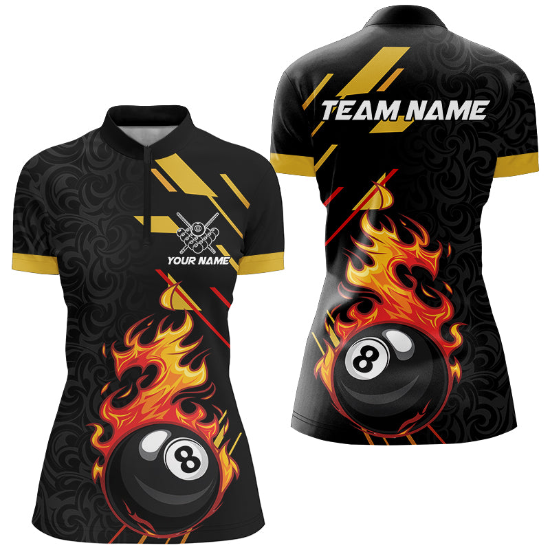 Funny 8 Ball Pool Flame Billiard Jerseys Custom Polo & 1/4 Zip For Women, Billiard Team Shirts TDM2886