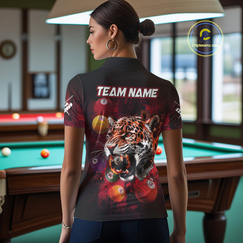 Funny Panther Flaming 8 Ball Billiard Pool Shirt For Women Custom Billiard Team Jerseys |Red TDM3825