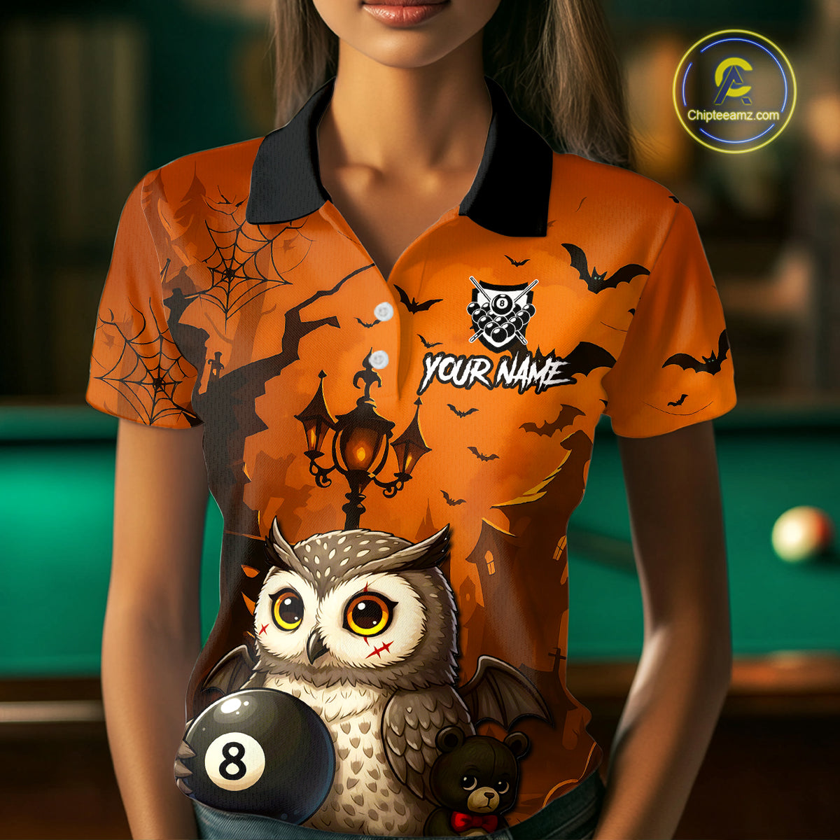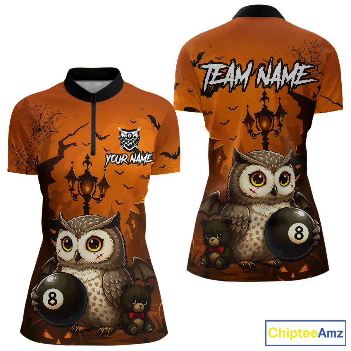 Personalized Funny Owl 8 Ball Pool Halloween Billiard Shirt Custom Pumpkin Billiard Jersey For Women TDM4928