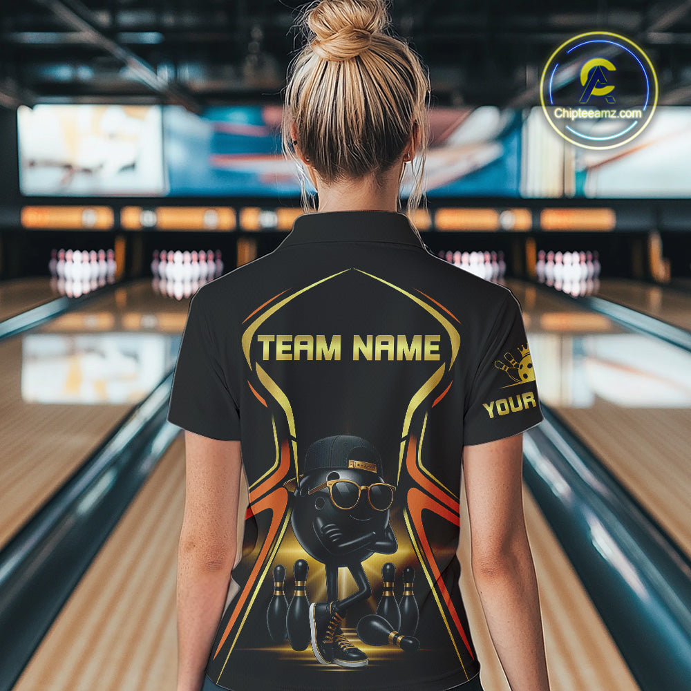 Black and Gold Funny bowling ball and pins Bowling shirts for Women Custom cool bowling team jerseys NQS10273