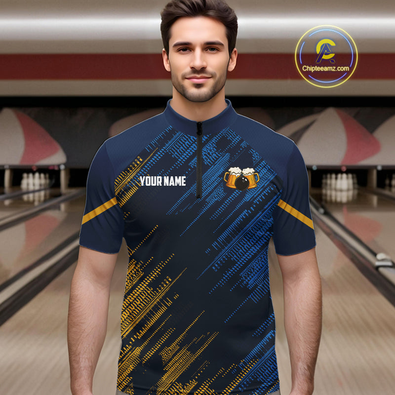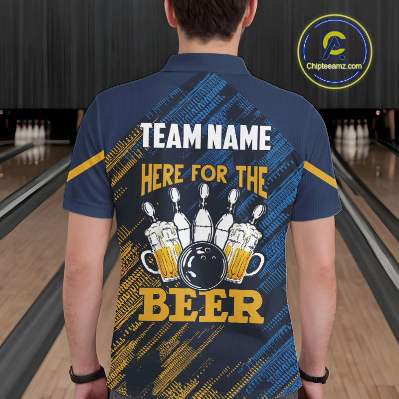 Blue and Yellow Pattern Bowling Shirt For Men Custom Here For The Beer Funny Bowling Tournament Shirt NQS10717