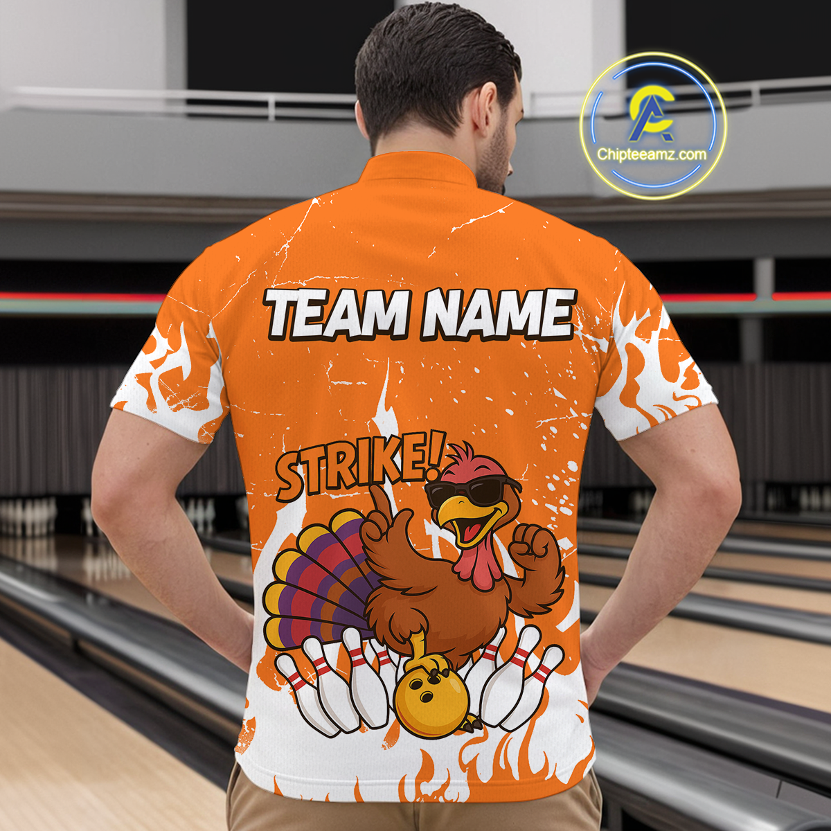Custom Orange Funny Turkey Bowling Jersey for Men Thanksgiving Bowling Team Shirts HNT115