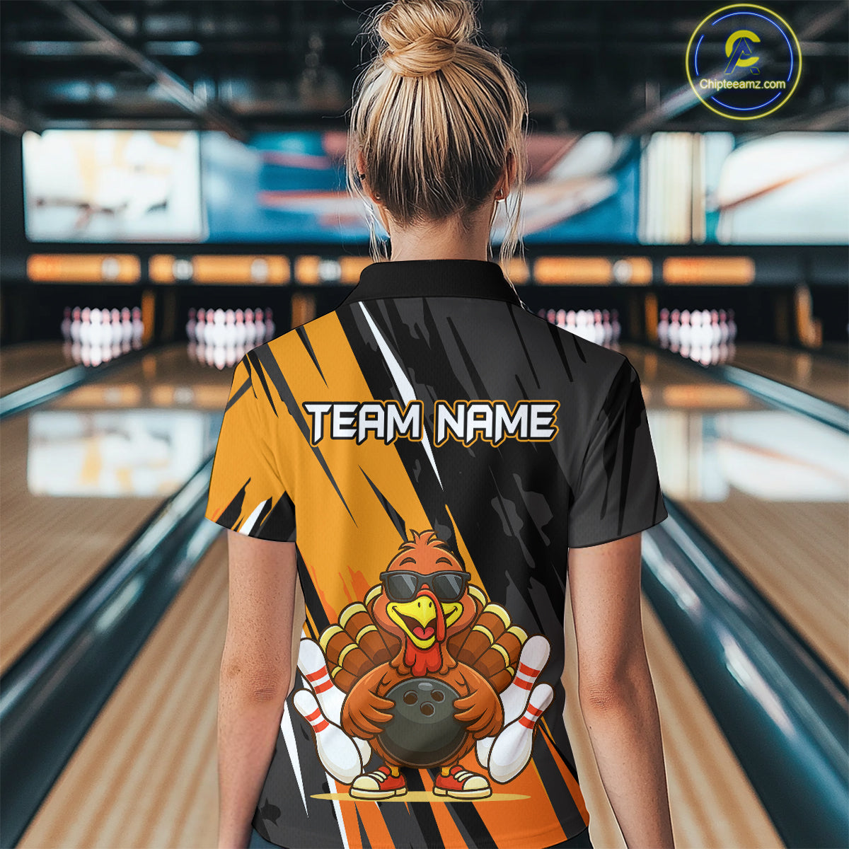 Custom Orange Funny Turkey Bowling Jersey for Women Polo & 1/4 Zip Thanksgiving Bowling Team Shirts HNT124