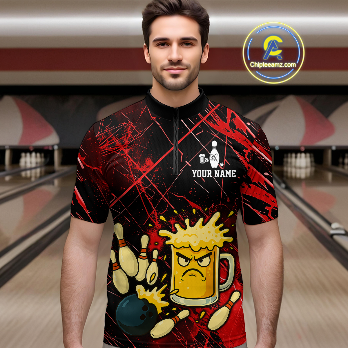 Custom Red Funny Beer Bowling Shirt Team Bowling League Jersey for Men Bowling Outfit QZT767