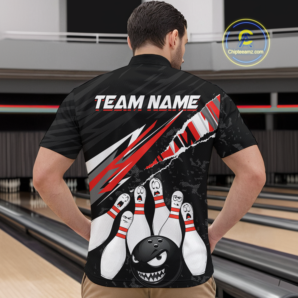 Custom Red Funny Bowling Jersey for Men Bowling Uniform Polo & 1/4 Zip Bowling Team Shirts HNT128