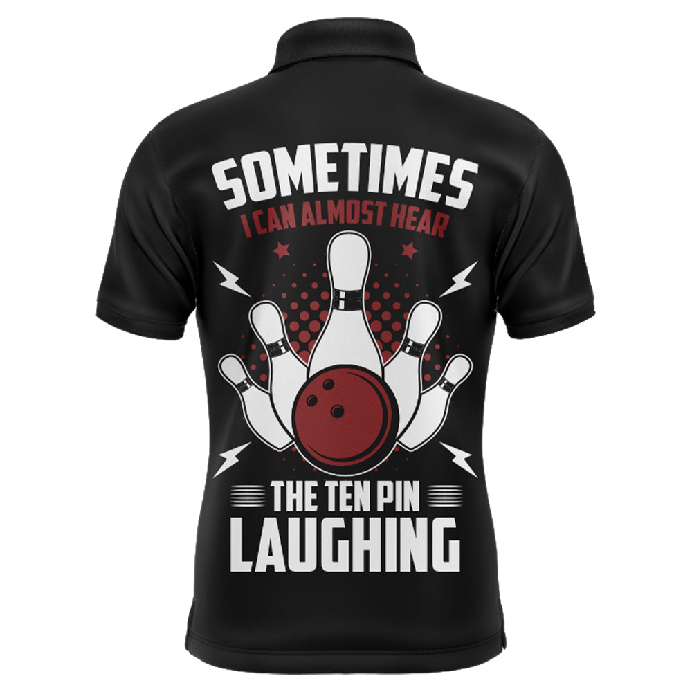 Funny Flame Polo Bowling Shirt for Men, Custom Name Black Bowling Jersey Ten Pin Laughing NBP131