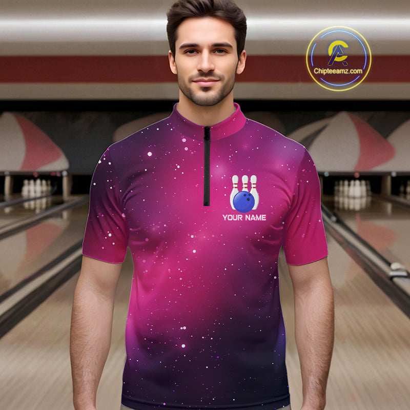 Funny Flamingo Team bowling shirts for Men custom Pink Galaxy pattern bowling jerseys for bowlers NQS10883