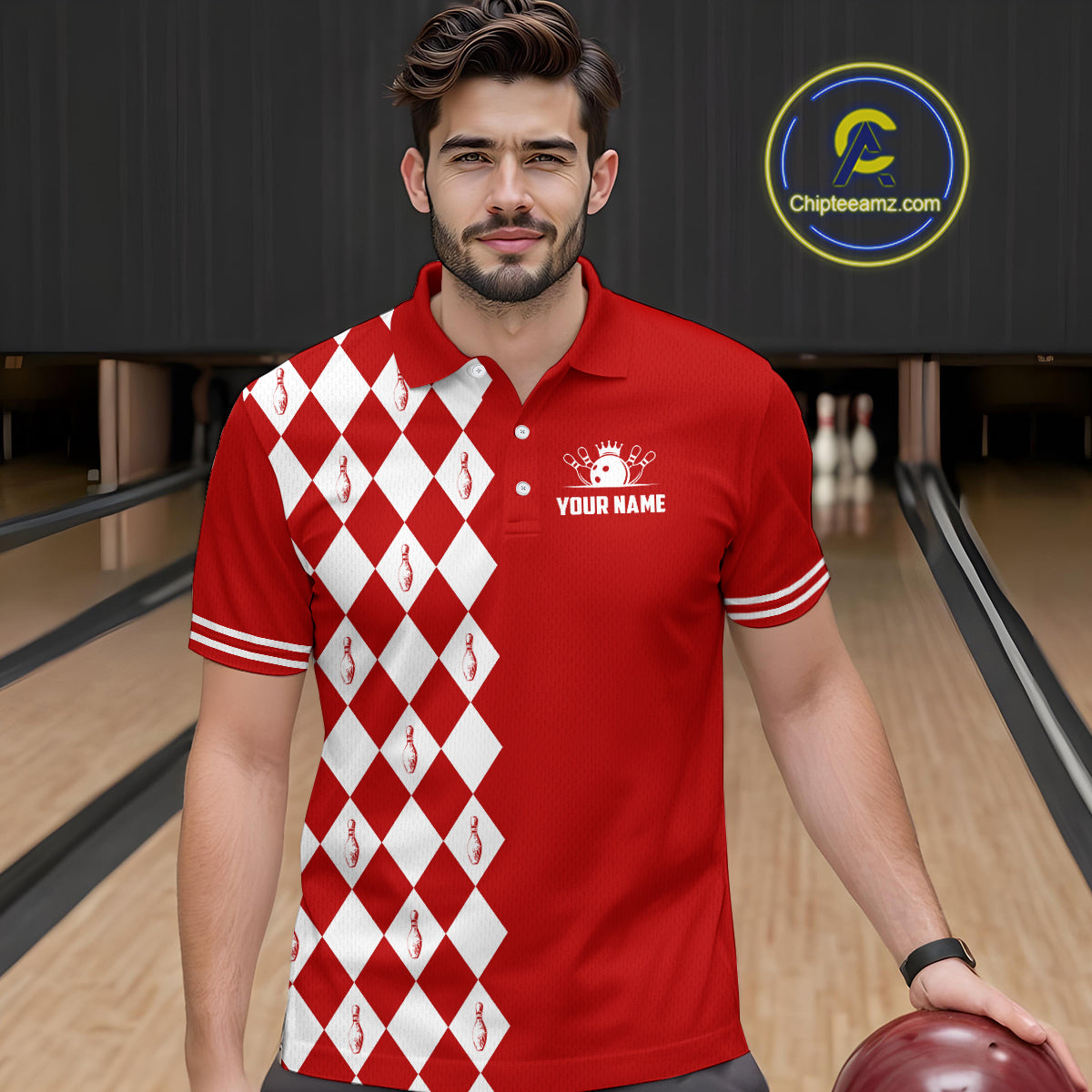 Funny red and white argyle retro Bowling Shirt for men Custom Does this shirt make my balls look big NQS10611
