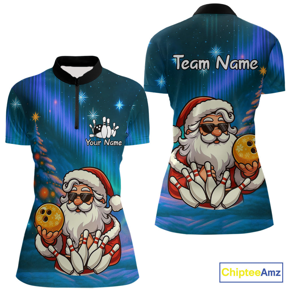 Funny Santa Christmas Bowling Shirts For Women Custom Blue Christmas Night Bowling Team Jersey NQS11010