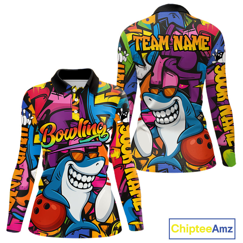 Funny Shark Bowling Shirts For Women Custom Colorful Shark Bowling outfit, Team Bowling Jersey NQS9815