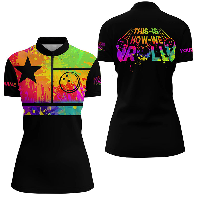 Funny Women bowling shirts watercolor Texas flag custom This is how we roll bowling jerseys | Black NQS8326