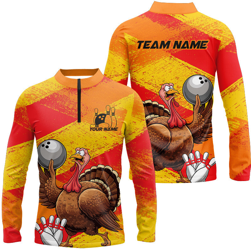 Orange And Yellow Custom Funny Turkey Bowling Shirts For Men, Thanksgiving Bowling Team Outfits IPHW7882