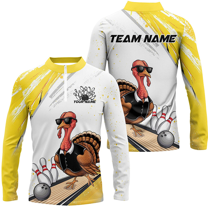 Custom Yellow Funny Turkey Bowling Team Shirts For Men, Thanksgiving Bowler Outfits IPHW7940