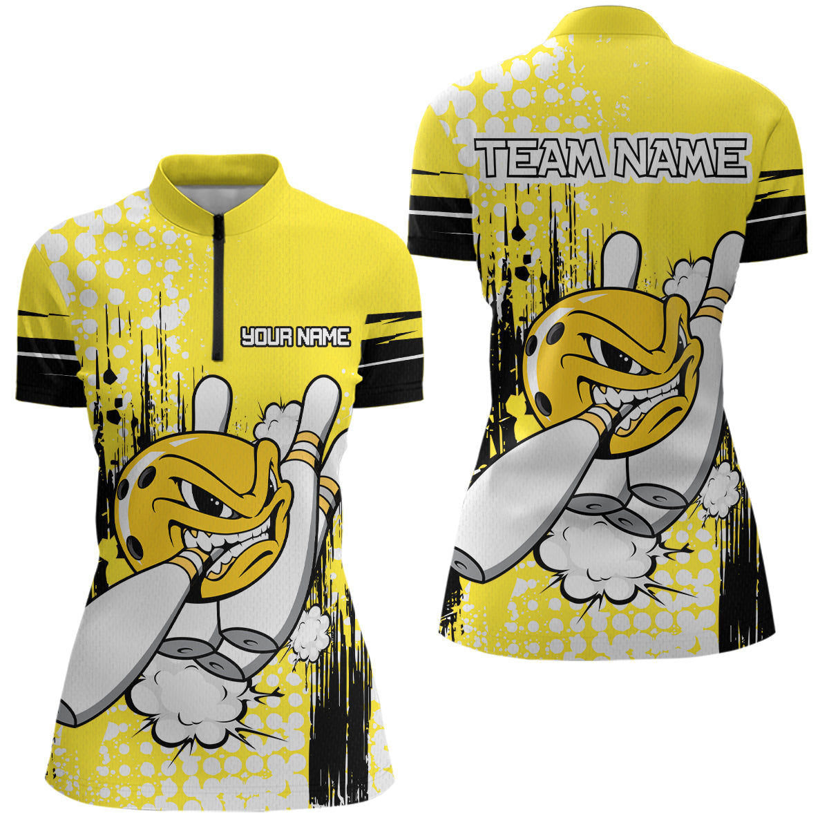 Personalized Yellow Funny Crazy Bowling Shirt for Women Polo & Quarter-Zip Bowling Jersey with Team HNT03