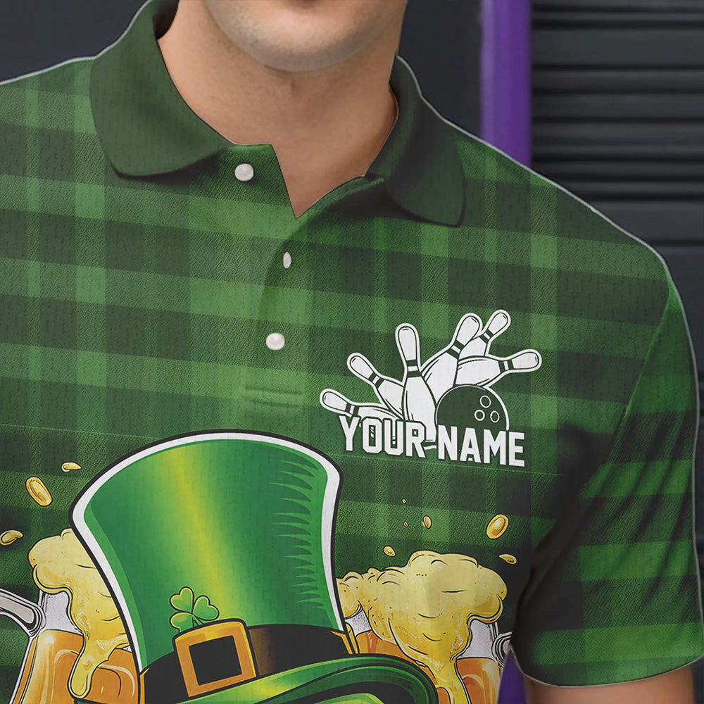 Custom Funny Saint Patricks Day Skull And Beer Bowling Polo Shirt For Men, Lucky Team Shirt IPHW8579