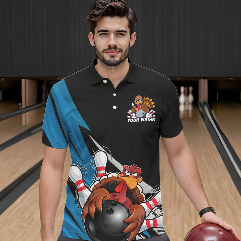 Black And Blue Custom Funny Turkey Thanksgiving Bowling Team Polo Shirts For Men IPHW8878