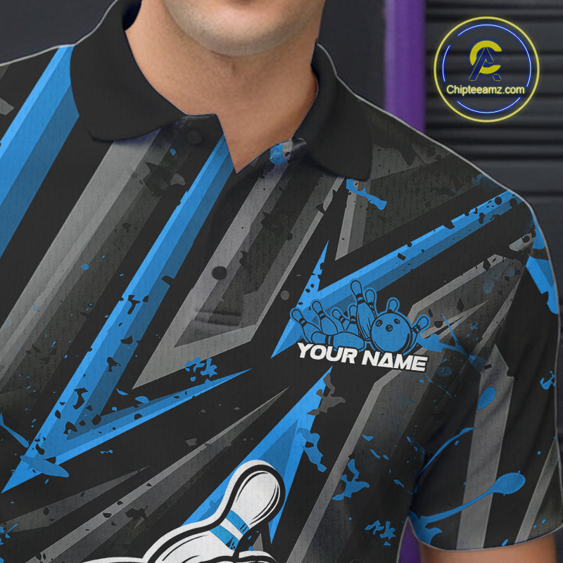 Black And Blue Funny Custom Bowling Jerseys, Cool Bowling Polo Shirts For Men IPHW9362