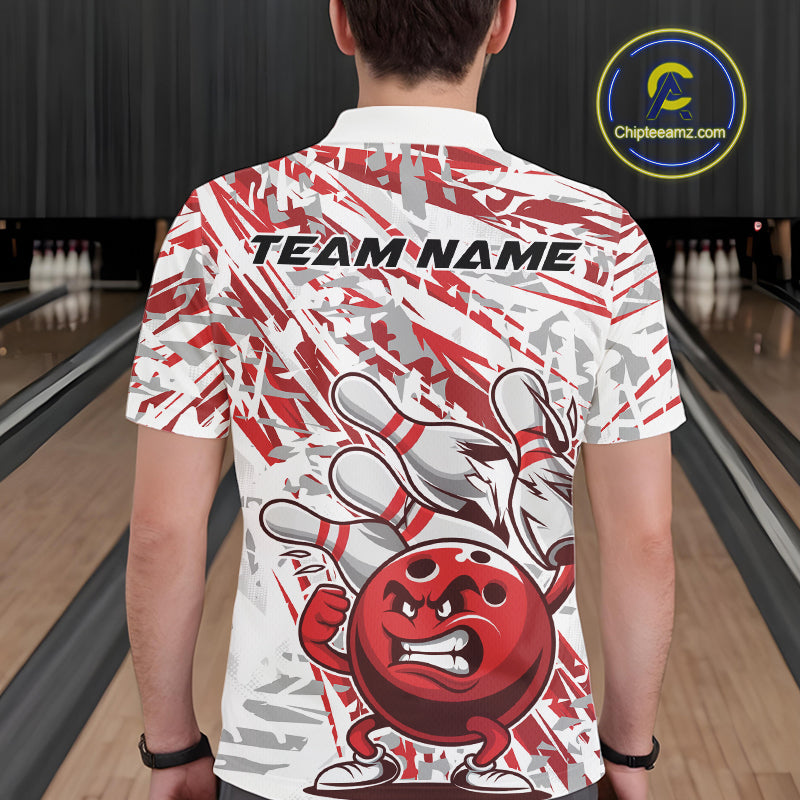 Red Camo Custom Funny Bowling Polo Shirts For Men, Bowling Team Tournament Shirt IPHW9397