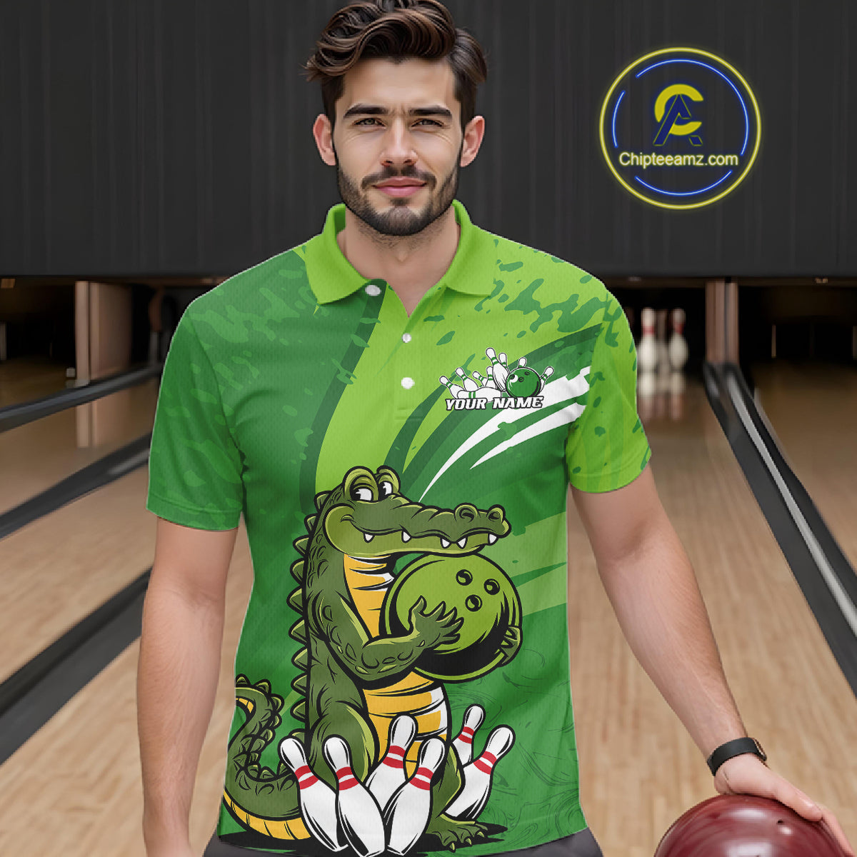 Custom Funny Alligator Bowling Tournament Team Jerseys, Alligator Bowling Men Polo Shirt IPHW9925