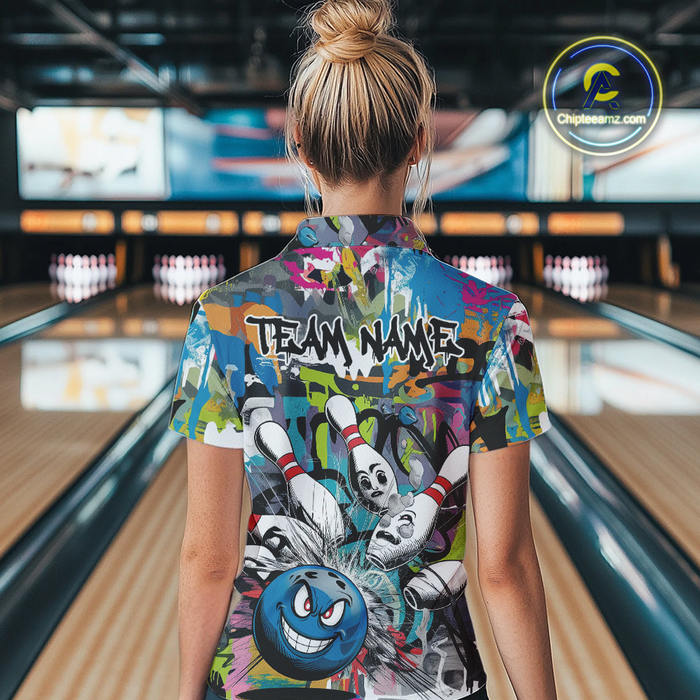 Custom Funny Graffity Bowling Polo Shirts For Women, Bowling Team Shirt IPHW9381