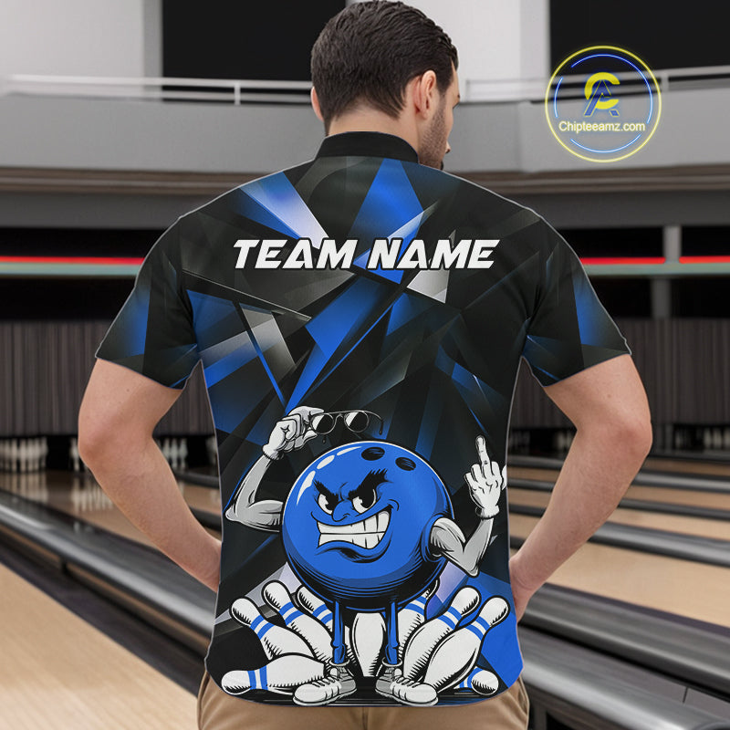 Black And Blue Custom Funny Bowling Team Quarter-Zip Shirts For Men, Bowling Jerseys IPHW9357
