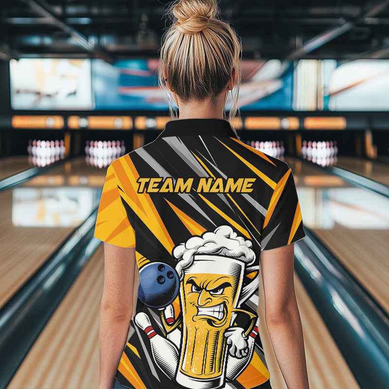 Custom Black And Yellow Funny Beer Bowling Women Quarter-Zip Shirt, Angry Beer Glass Jersey IPHW8933