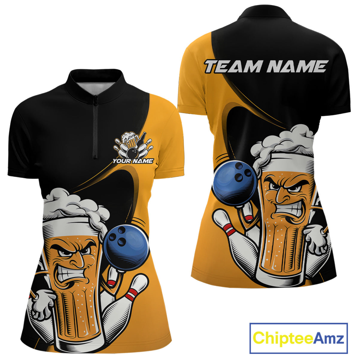 Custom Funny Black And Yellow Bowling And Beer Women Quarter-Zip Shirt, Bowling League IPHW9609