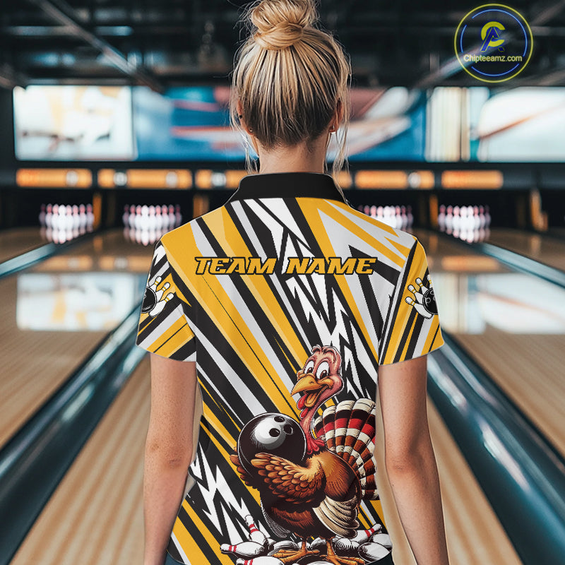 Custom Yellow Funny Thanksgiving Turkey Bowling Women Quarter-Zip Shirts, Bowling Jerseys IPHW9720