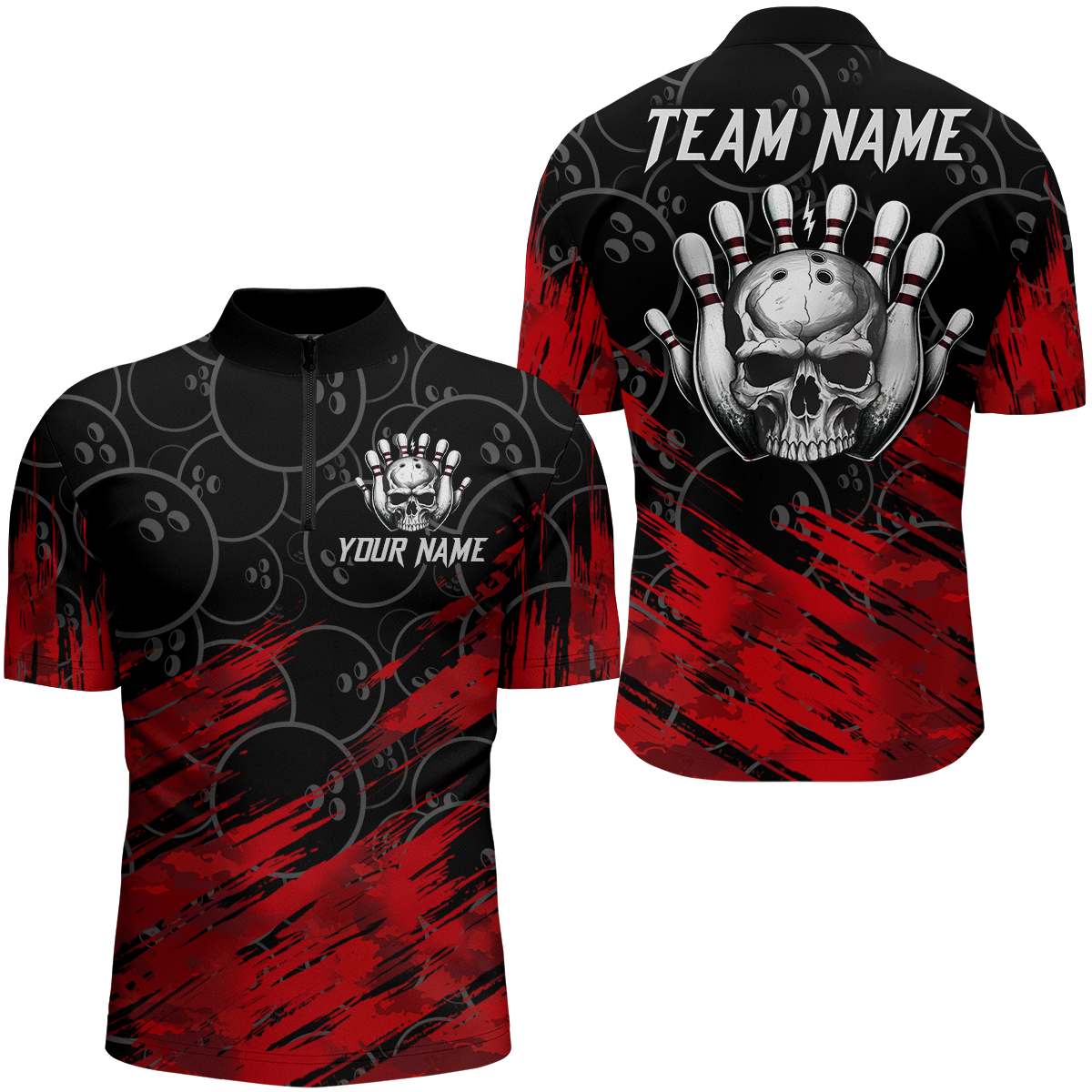 Red Skull Bowling Shirt for Men & Women Custom Funny 1/4 Zip Bowling Team Jersey BDT470