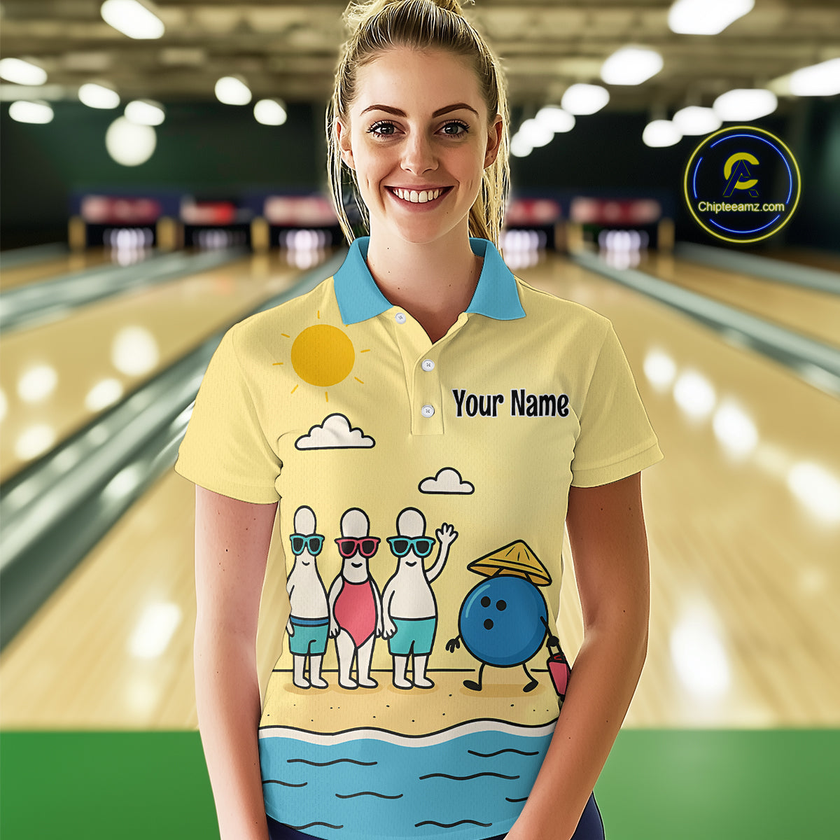 Summer Bowling Shirt Custom Polo Bowling Jersey Funny Bowling Pins and Ball QZT695