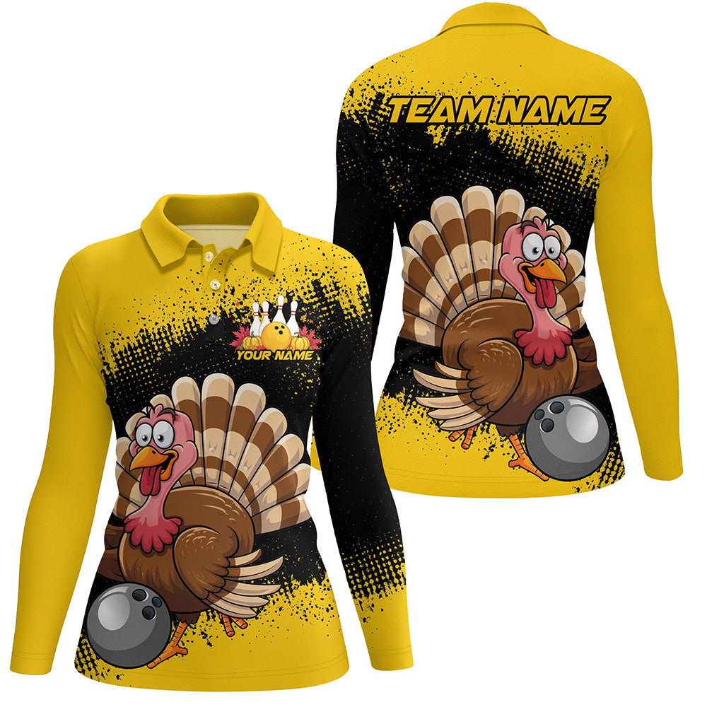 Black And Yellow Custom Funny Turkey Bowling Shirts For Women, Thanksgiving Bowling Uniform IPHW7870