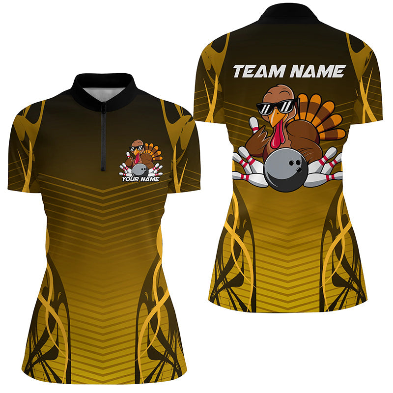 Custom Funny Turkey Bowling Team Shirts For Women, Thanksgiving Bowling Uniform Outfit IPHW7873