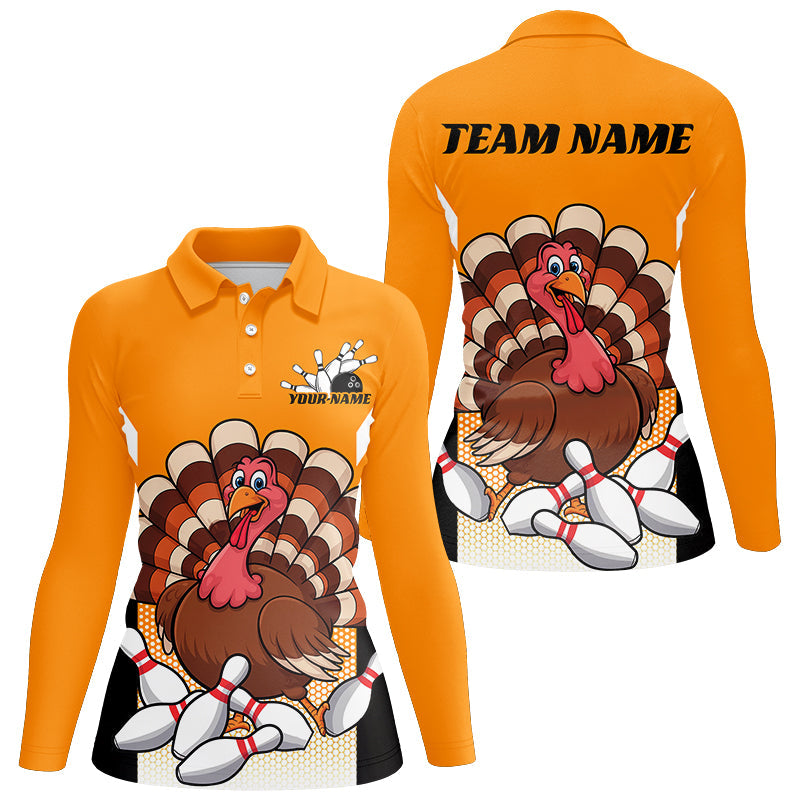Custom Yellow Funny Turkey Bowling Team Shirts For Women, Thanksgiving Bowler Outfits IPHW7888