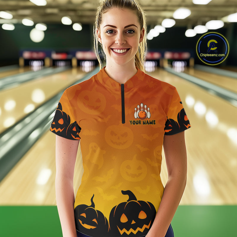 Personalized Orange Funny Bowling Halloween Shirt For Women Custom Bowling Team Jersey Outfit TDM4926