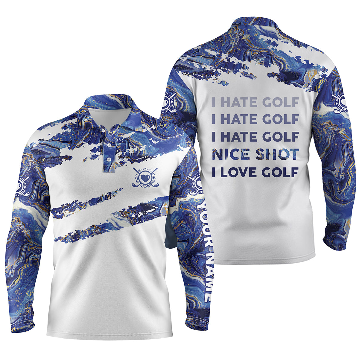 Funny golf I hate golf nice shot I love golf blue Men golf polo shirts custom name golf gifts NQS3763