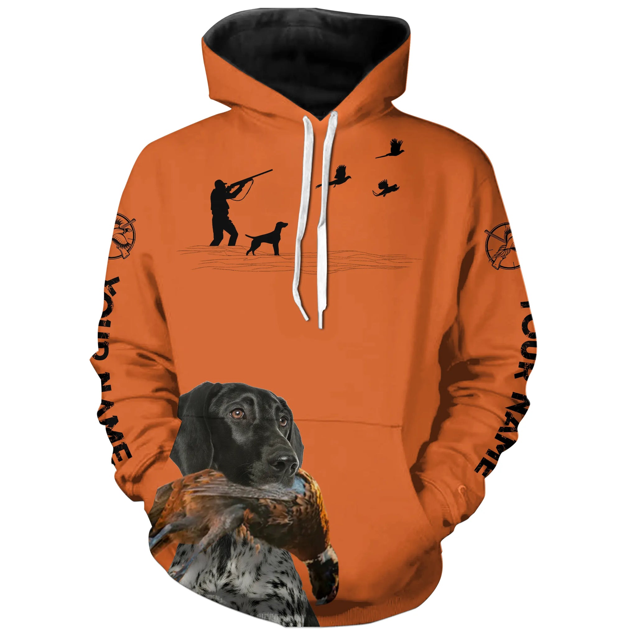 Black German Shorthaired Pointer Dog Pheasant Hunting Custom name Orange Shirts for Upland hunters FSD3958